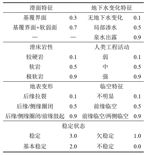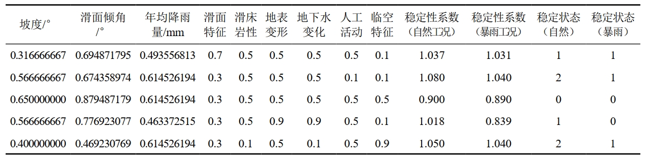 表 1 滑坡穩(wěn)定性評(píng)價(jià)模型原始數(shù)據(jù)樣本