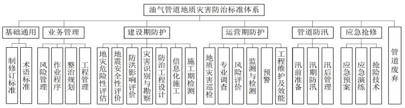 圖 3 油氣管道地質(zhì)災(zāi)害防治標(biāo)準體系架構(gòu)