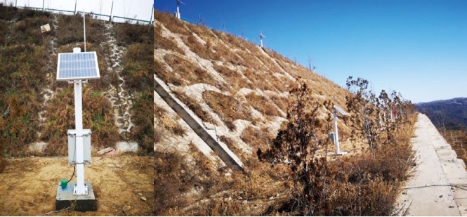 (1)智能感知終端。在管道沿線安裝地表位移監(jiān)測裝置(圖 4),在各閥室與場站安裝壓力變送器和溫度變送器等感知終端并接入系統(tǒng),及時獲取真實、可靠的管道運行數(shù)據(jù)。