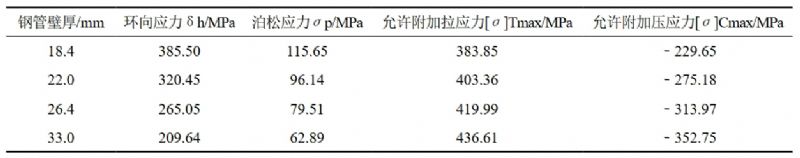 表 1 管道強(qiáng)度校核計(jì)算結(jié)果