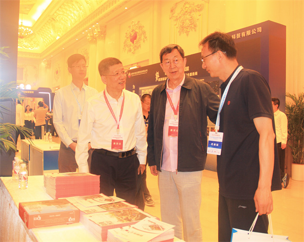 國(guó)家管網(wǎng)集團(tuán)科技部總經(jīng)理丁建林(中)參觀《管道保護(hù)》展臺(tái)