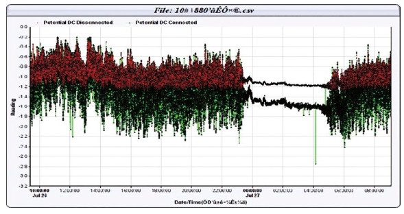 圖 2 10#+880 m通斷電電位監(jiān)測圖