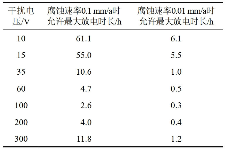 表 1 高壓直流電區(qū)域管道腐蝕防護安全邊界