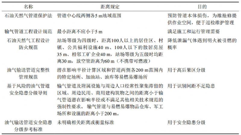 1.2 國內(nèi)管道安全距離法規(guī)標準規(guī)定