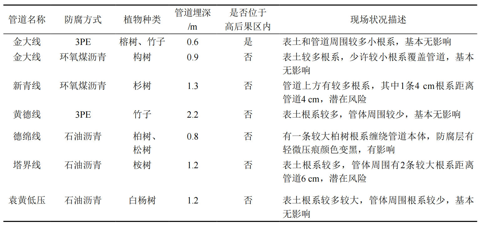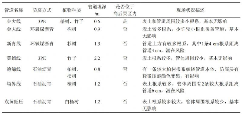 植物根系影響長輸天然氣管道外防腐層調(diào)查分析