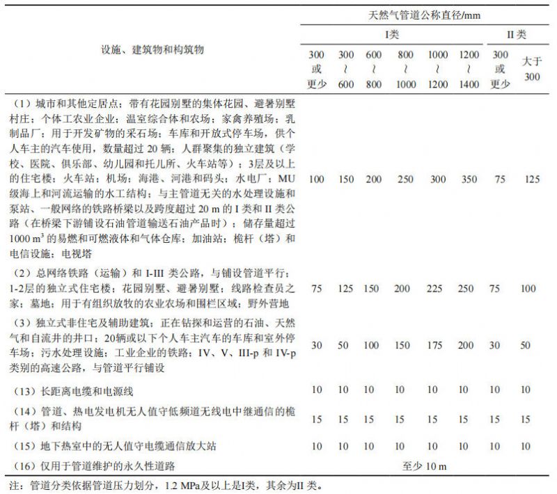 表 1 烏國天然氣管道和建筑物、構(gòu)筑物的最小距離(節(jié)選 單位: m)