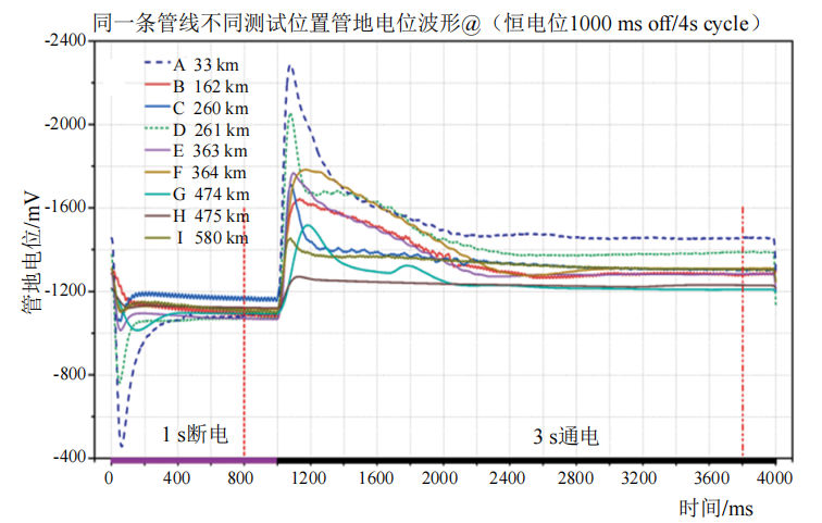 綜上,采用通斷電位法進(jìn)行測(cè)試時(shí),合理選擇通斷周期及延遲時(shí)間是確保數(shù)據(jù)準(zhǔn)確的前提。