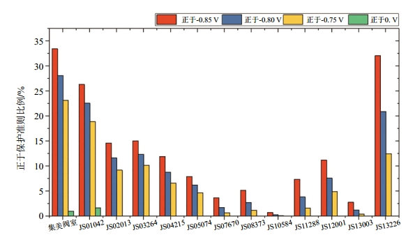圖 2 集石支線初始狀態(tài)保護(hù)電位正于保護(hù)準(zhǔn)則比例