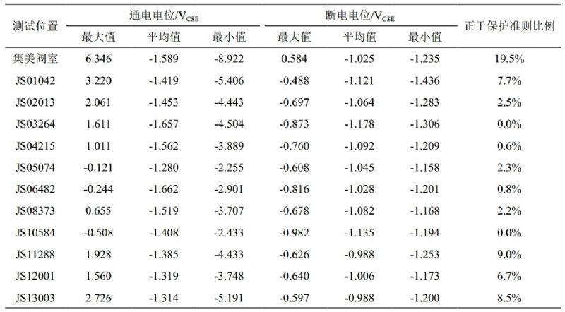表 2 集石支線直流干擾檢測(cè)數(shù)據(jù)