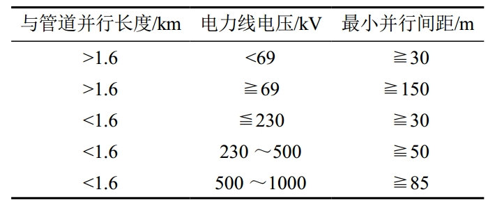 1)當(dāng)管道與架空電力線并行敷設(shè)時(shí),其水平間距應(yīng)滿足表 3要求。